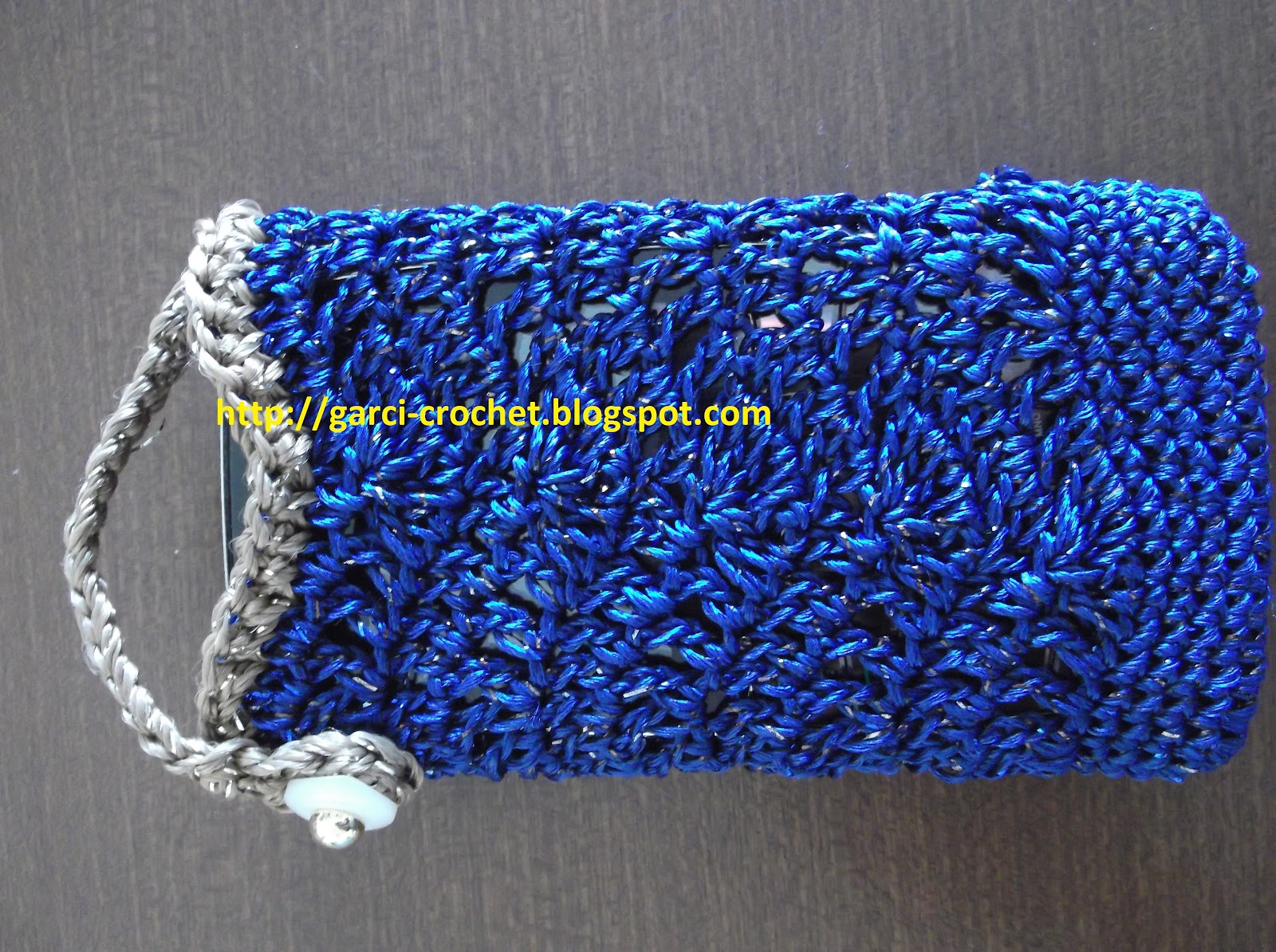 Pochette pour téléphone portable au crochet.